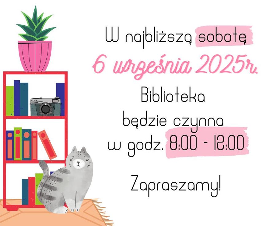 Miłośników książek zapraszamy w sobotę do Miejskiej Biblioteki Publicznej w godzinach od 8:00 do 12:00.