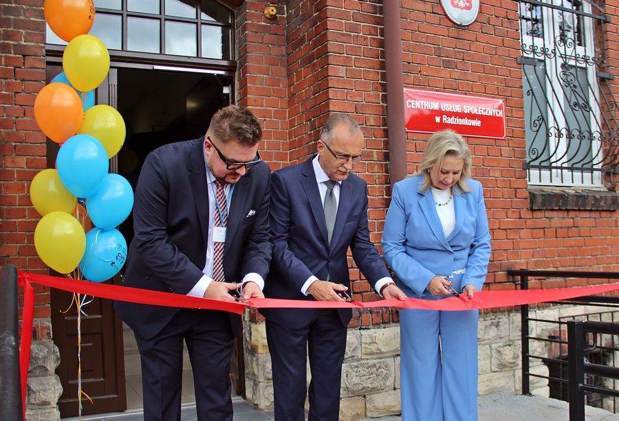 Symbolicznego przecięcia wstęgi dokonał Burmistrz Miasta Gabriel Tobor, Dyrektor Centrum Usług Społecznych w Radzionkowie Jakub Janiak oraz Anna Zasada - Chorab - Dyrektor Regionalnego Ośrodka Polityki Społecznej w Katowicach.