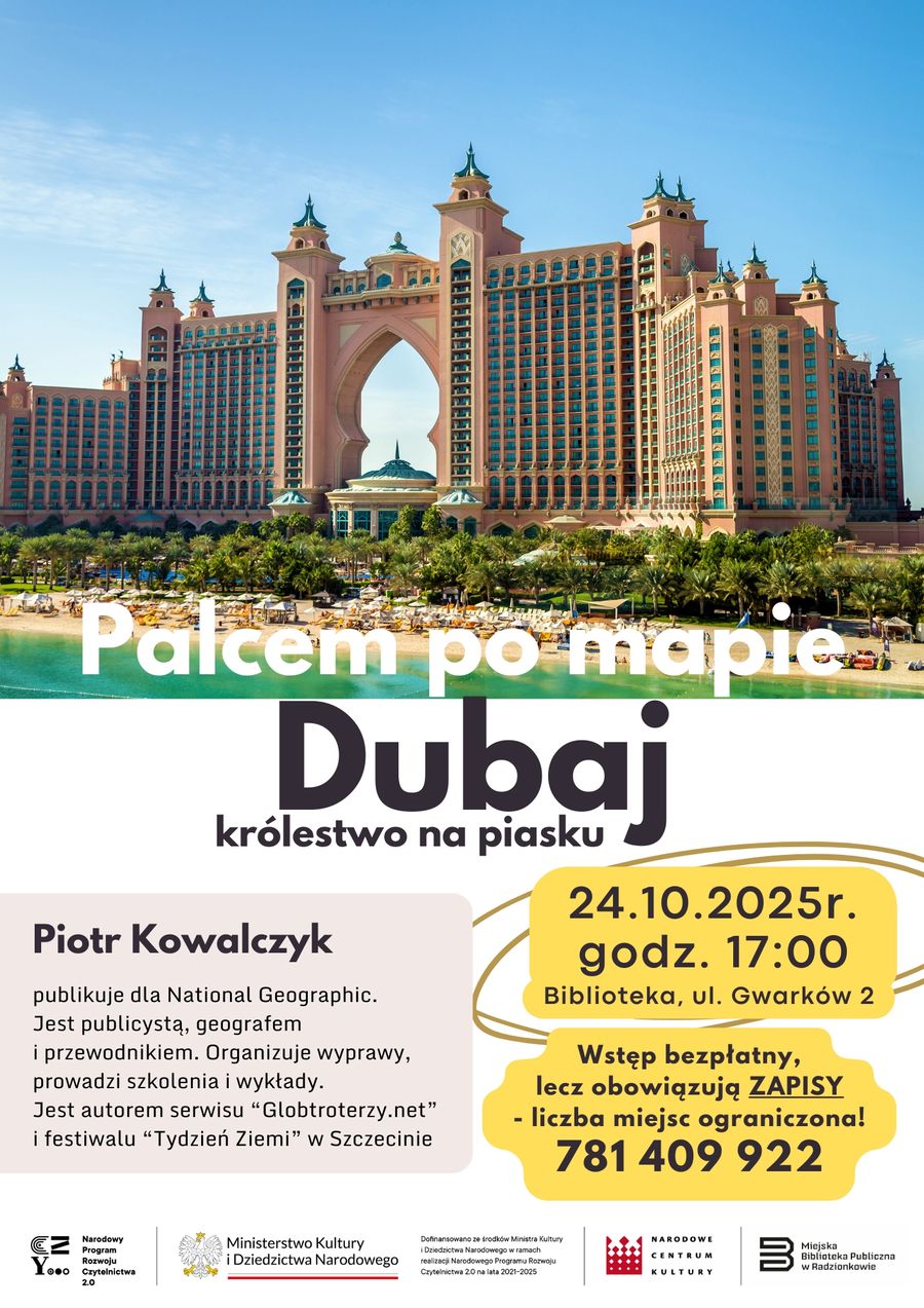 Podczas trzeciego spotkania będzie okazja aby wysłuchać pasjonującej opowieści o królestwie na piasku - Dubaju. Prelegentem będzie Piotr Kowalczyk - publicysta, geograf i przewodnik.