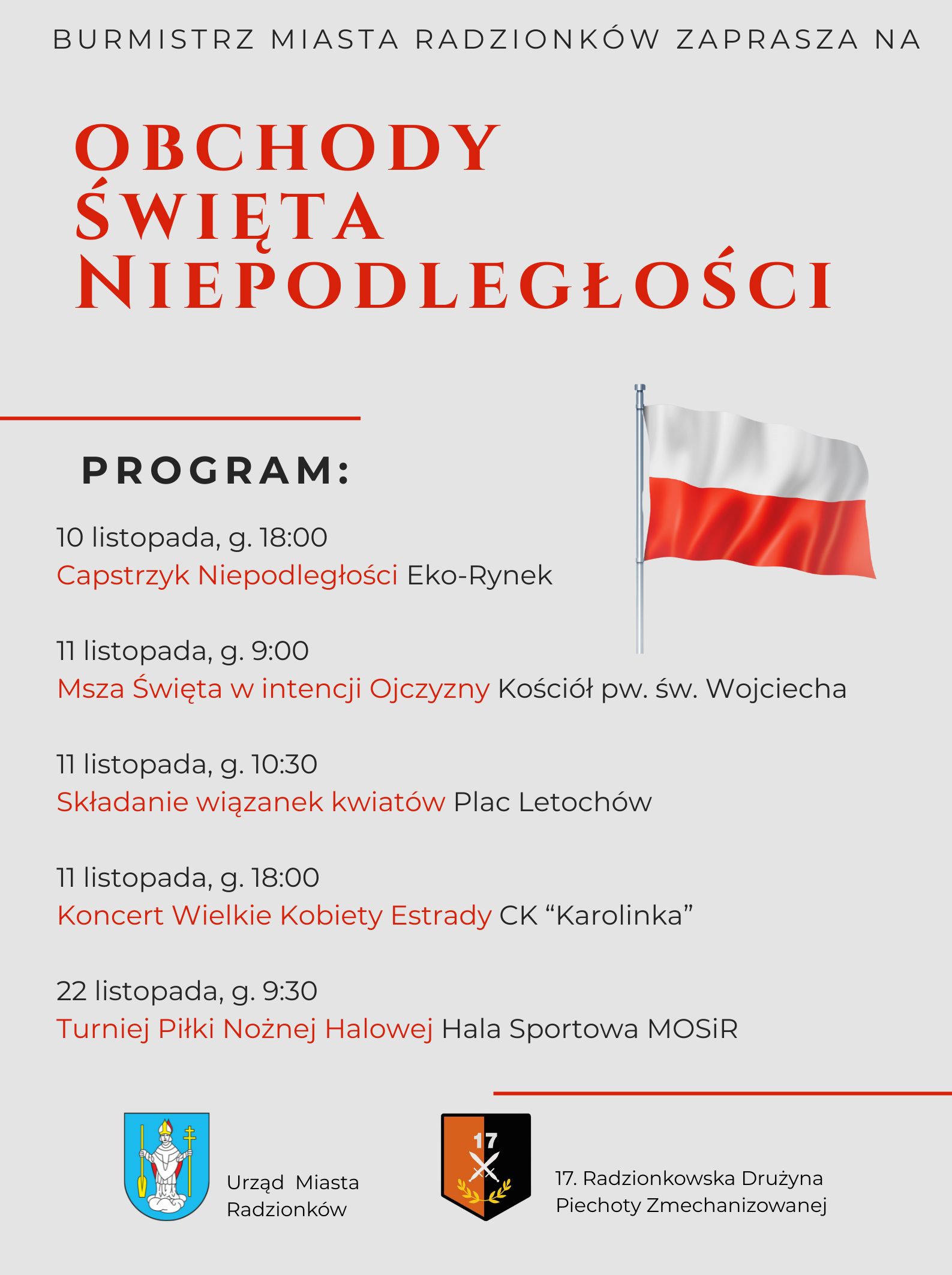 Burmistrz Miasta Radzionków zaprasza na obchody Narodowego Święta Niepodległości.