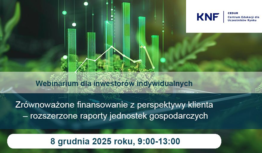 Webinarium CEDUR „Zrównoważone finansowanie z perspektywy klienta – rozszerzone raporty jednostek gospodarczych” odbędzie się 8 grudnia 2025 roku w godzinach od 9:00 do 13:00. Udział w webinarium jest bezpłatny.