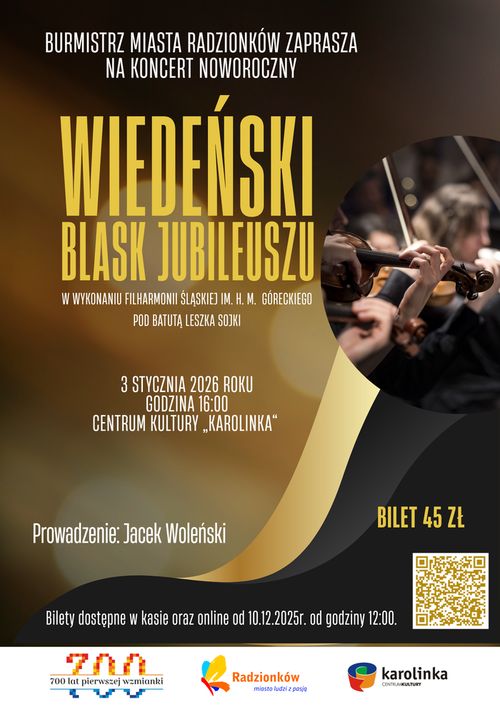 Na scenie wystąpi Filharmonia Śląska im. Henryka Mikołaja Góreckiego pod batutą Leszka Sojki, prezentując program inspirowany tradycją słynnych wiedeńskich koncertów noworocznych. Wirtuozeria muzyków i klasyczne brzmienia stworzą idealne otwarcie jubileuszowego roku pełnego wydarzeń i świętowania.