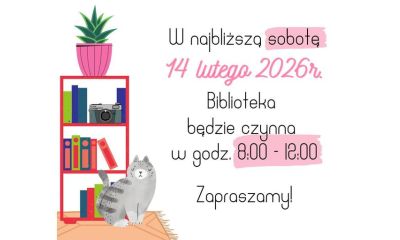 Miłośników książek zapraszamy w sobotę do Miejskiej Biblioteki Publicznej w godzinach od 8:00 do 12:00.