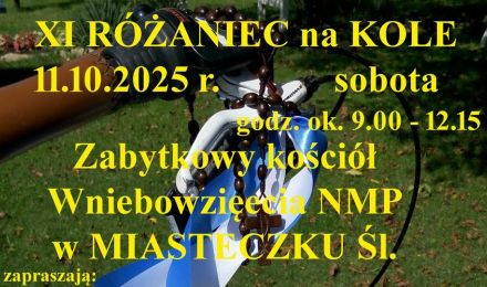 Stowarzyszenie Rodzin Katolickich przy parafii pw. św. Wojciecha w Radzionkowie wraz z Klubem Turystyki Rowerowej przy parafii MB Jasnogórskiej w Orzechu, zapraszają w sobotę, 11 października na „XI Różaniec na kole”.